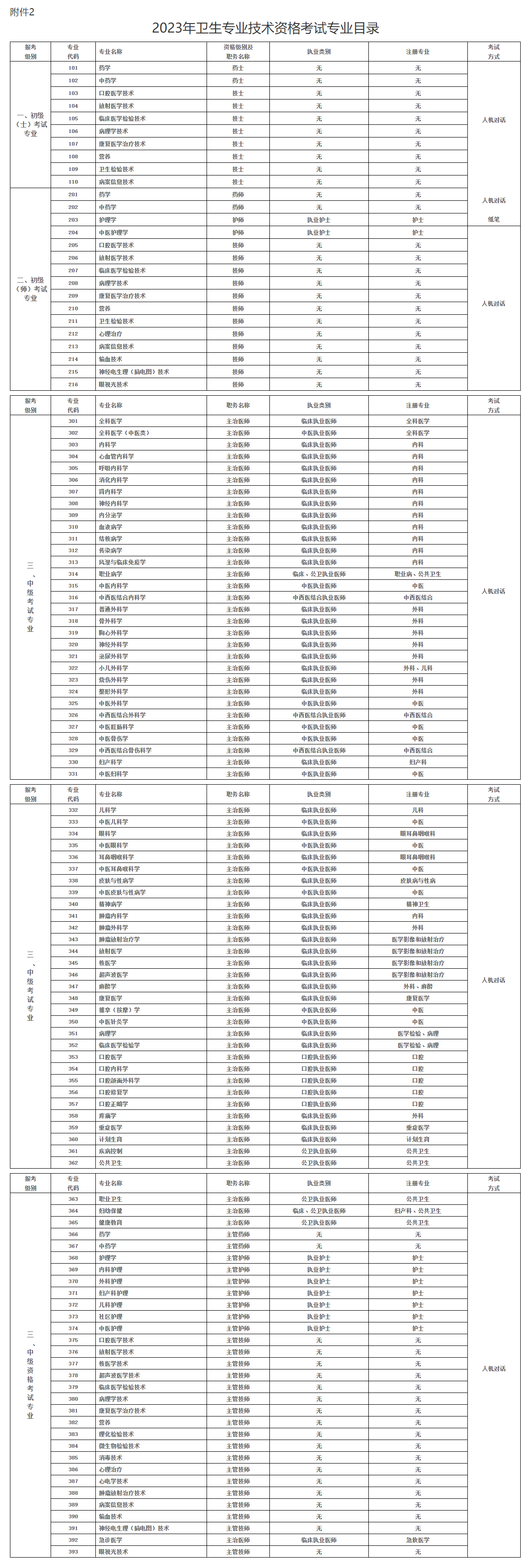 2.2023年度衛(wèi)生專(zhuān)業(yè)技術(shù)資格考試專(zhuān)業(yè)目錄