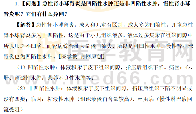 1.【問(wèn)題】急性腎小球腎炎是凹陷性水腫還是非凹陷性水腫,慢性腎小球腎炎呢?它們有什么異同?