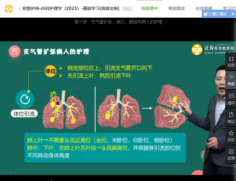 2023初級護師考試考點:支氣管擴張癥的體位引流原則