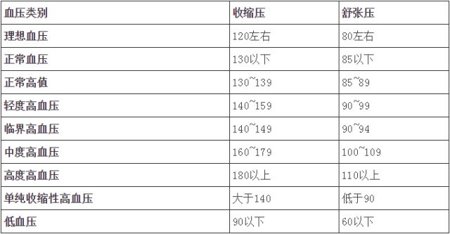 各年齡正常血壓參考值對照表