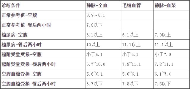 血糖參考值及一般診斷標準