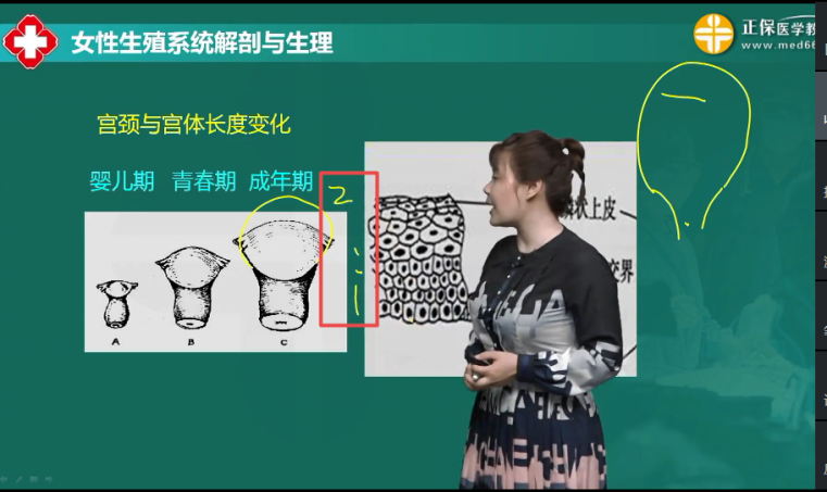 成人子宮體與子宮頸的比例為2:1,嬰兒期為1:2。
