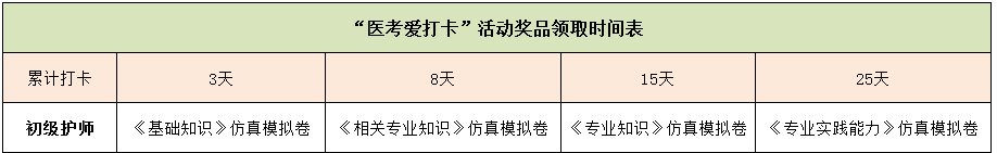 第二步:根據(jù)相應(yīng)提示即可參加“醫(yī)考愛打卡”活動(dòng),免費(fèi)領(lǐng)取2019初級(jí)護(hù)師《仿真模擬卷》