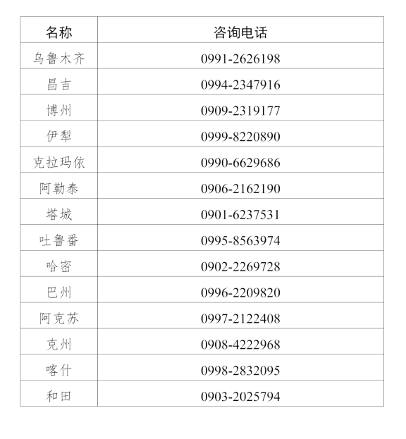 六、新疆考區(qū)衛(wèi)生專業(yè)技術(shù)資格考試各考點咨詢電話