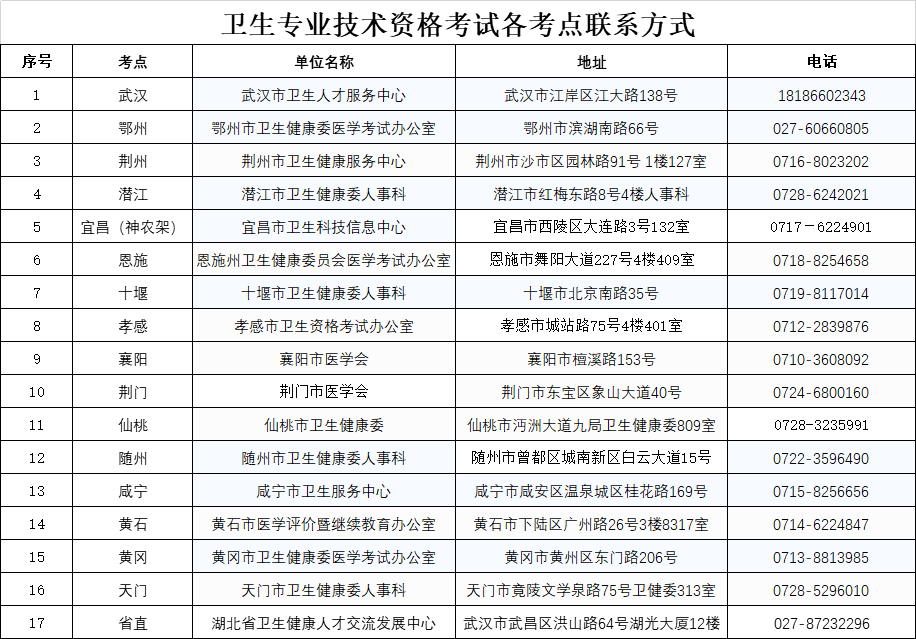 湖北2024年藥學(xué)職稱(chēng)考試各考點(diǎn)聯(lián)系方式