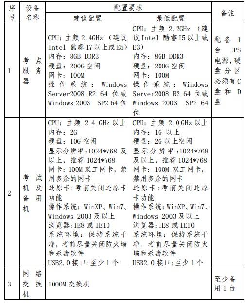 (二)每個考點至少配備 2 臺考點服務(wù)器,其中一臺正常使用,其余作為備用。