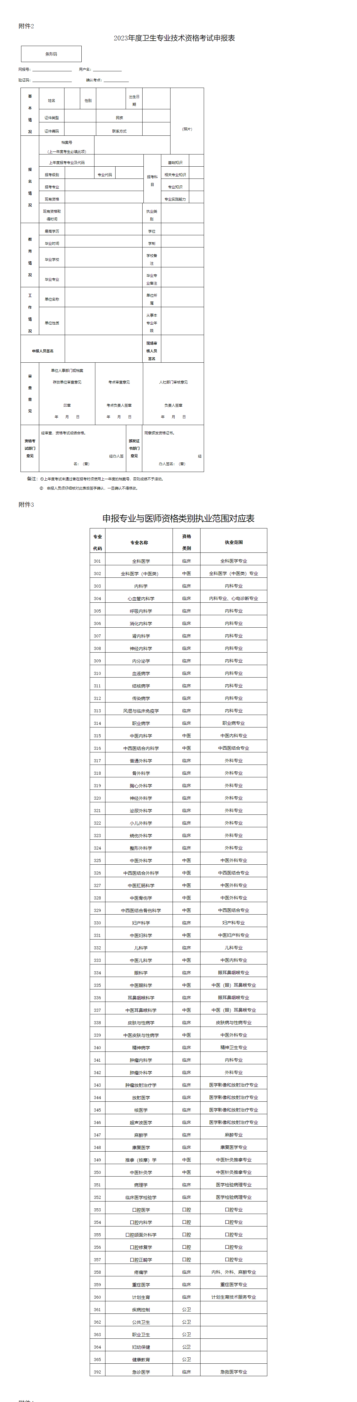 (七)根據(jù)《中華人民共和國(guó)醫(yī)師法》及有關(guān)文件規(guī)定,凡報(bào)考專業(yè)代碼為301(含)至365(含)以及392專業(yè)的人員,應(yīng)嚴(yán)格按照衛(wèi)生技術(shù)人員的準(zhǔn)入要求、所從事專業(yè)工作、醫(yī)師資格類別和注冊(cè)范圍,選擇相應(yīng)專業(yè)進(jìn)行申報(bào),禁止跨執(zhí)業(yè)類別報(bào)考,并在報(bào)名時(shí)提交相應(yīng)專業(yè)醫(yī)師資格證書(shū)和執(zhí)業(yè)證書(shū)。各申報(bào)專業(yè)對(duì)應(yīng)的醫(yī)師資格類別和注冊(cè)范圍見(jiàn)《申報(bào)專業(yè)與醫(yī)師資格類別執(zhí)業(yè)范圍對(duì)應(yīng)表》(附件3)。凡報(bào)考專業(yè)代碼為203、204以及368-374專業(yè)的人員,應(yīng)具備護(hù)士執(zhí)業(yè)資格,并在報(bào)名時(shí)提交護(hù)士執(zhí)業(yè)證書(shū)。