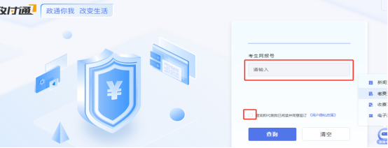 此地址跳轉(zhuǎn)到繳款碼查詢頁面,用來查詢此次考試繳費對應的繳款碼(標紅處輸入考生網(wǎng)報號,并勾選下方“同意簽訂《商戶服務協(xié)議》”后點擊查詢即可,網(wǎng)報號在報名系統(tǒng)中打印的《報名申請表》左上角顯示)。