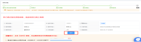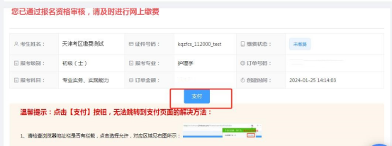 1.考生在報名網(wǎng)站(中國衛(wèi)生人才網(wǎng))點擊報名的考試項目后,進入報考流程繳費頁面進行支付。
