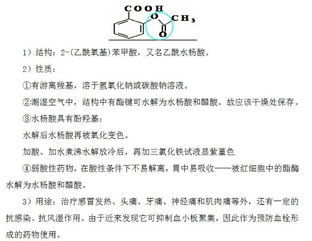 阿司匹林結(jié)構(gòu)、性質(zhì)和用途