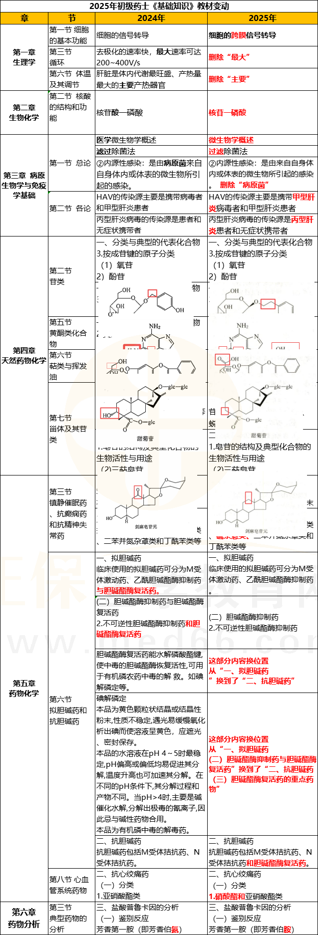 2025年主管藥師《基礎(chǔ)知識(shí)》教材變動(dòng)詳解!