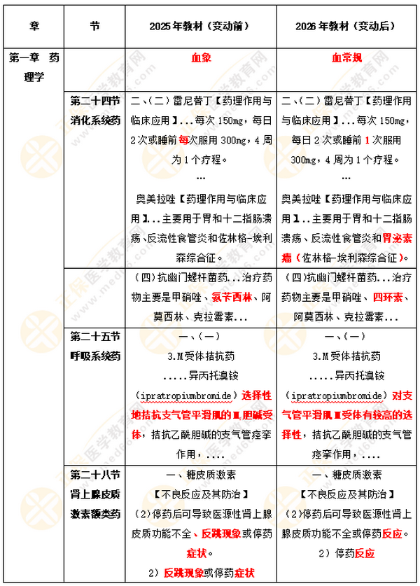 新教材來(lái)啦!醫(yī)學(xué)教育網(wǎng)教務(wù)團(tuán)隊(duì)將教材與上一年教材進(jìn)行了認(rèn)真細(xì)致的比對(duì),發(fā)現(xiàn)今年實(shí)質(zhì)性的變動(dòng)不是很大。