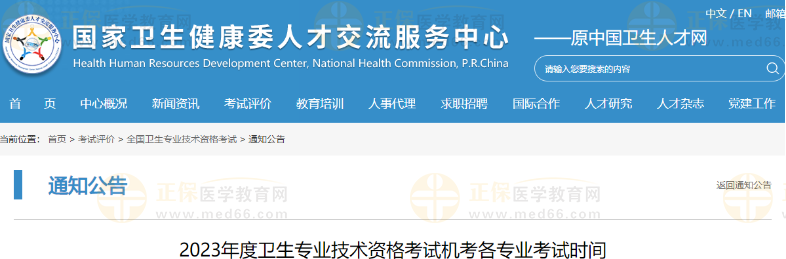國家衛(wèi)生健康委人才交流服務(wù)中心(原中國衛(wèi)生人才網(wǎng))發(fā)布2023年度衛(wèi)生專業(yè)技術(shù)資格考試機(jī)考各專業(yè)考試時(shí)間,2023年藥士/藥師/主管藥師考試時(shí)間為4月23日!