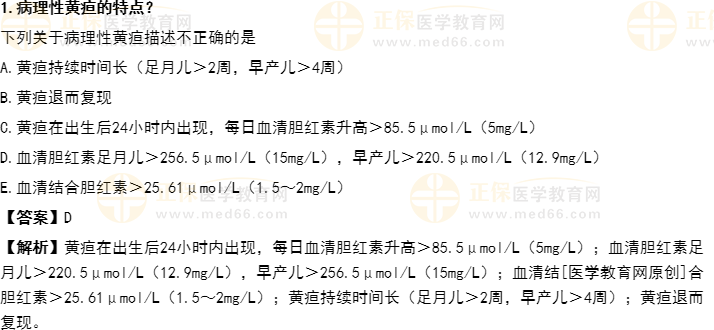 1.病理性黃疸的特點(diǎn)?