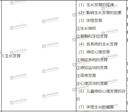 從兒科主治醫(yī)師考試大綱來看,小兒生長發(fā)育考點(diǎn)考察規(guī)律、影響因素、各系統(tǒng)生長發(fā)育、體格生長偏離等內(nèi)容。點(diǎn)擊查看考試大綱>>