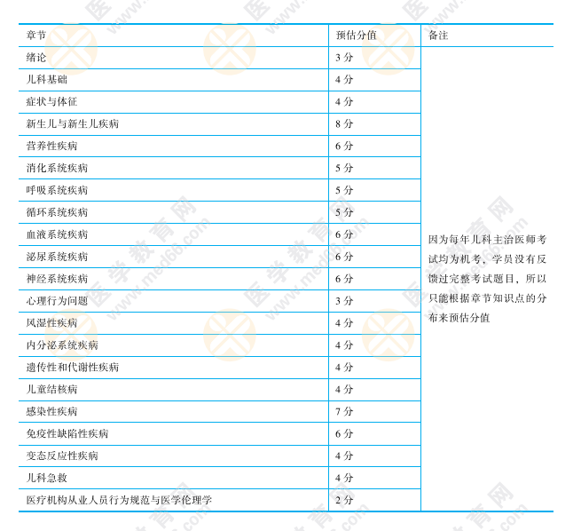 以上各章節(jié)分值占比是根據(jù)歷年考試得出的預(yù)估分值,各位兒科主治考生可以參考復(fù)習(xí),但是實(shí)際分值占比需以實(shí)際考試為準(zhǔn)。
