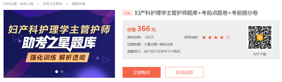 婦產(chǎn)科主管護(hù)師考試助考之星題庫+考前金題卷+考前??季恚o扣考試大綱、考試教材,符合考試考試題型與考試科目。復(fù)習(xí)輔導(dǎo)資料豐富,免費(fèi)試用、試題庫大,輔導(dǎo)軟件收錄考前沖刺題、歷年考點(diǎn)練習(xí)題等,并提供專業(yè)級(jí)解題方法、答題技巧、考試要點(diǎn)精解。提高您考試的應(yīng)試能力,輔導(dǎo)您考試成功。