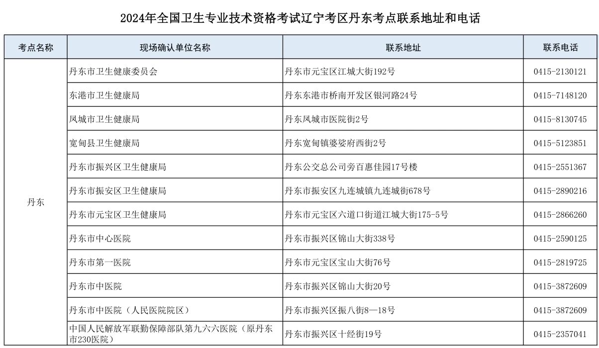 附件:2024年衛(wèi)生專業(yè)技術(shù)資格考試丹東考點聯(lián)系方式