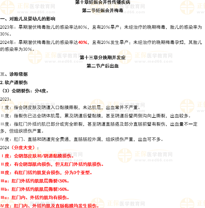 但是匯總具體疾病時(shí),可以看到有些數(shù)值有變化,尤其在婦科腫瘤變化較大,包括增加了最新的分期以及治療,均在緊跟臨床指南。綜上所述,考綱無(wú)變化,說(shuō)明考點(diǎn)同既往是一樣的,考試重難點(diǎn)不會(huì)有大方向調(diào)整,但治療及分期緊跟臨床指南,可見(jiàn)考試難度會(huì)逐年提高,越來(lái)越考察考生的臨床專(zhuān)業(yè)能力與綜合運(yùn)用的能力。醫(yī)學(xué)教育網(wǎng)確保2024年的婦產(chǎn)科主治醫(yī)師課程、題庫(kù)、資料等按照考試規(guī)律,繼續(xù)為各位考生剖析考點(diǎn),現(xiàn)將一些重點(diǎn)的實(shí)質(zhì)性變動(dòng)舉例如下: