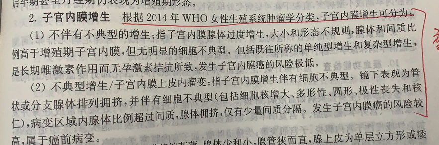 4.P172 功能失調(diào)性子宮出血-無排卵性功血-子宮內(nèi)膜的病理變化的第2條,子宮內(nèi)膜增生診斷內(nèi)容變化,內(nèi)容如下: