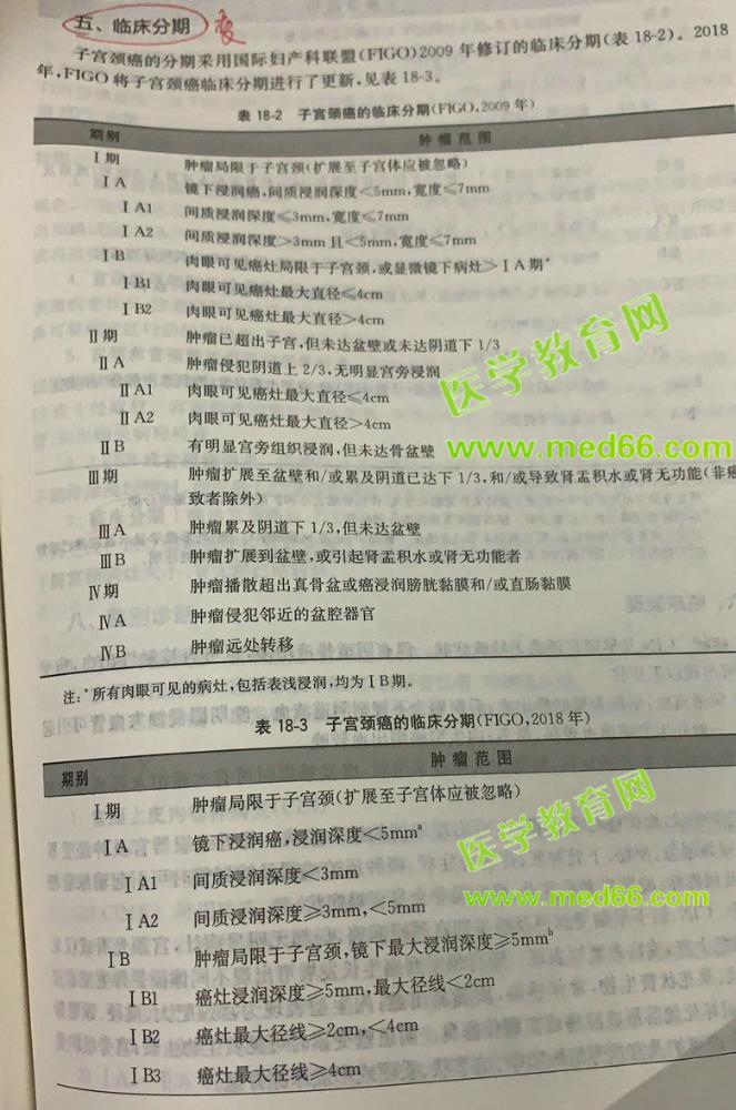 宮頸癌的臨床分期(FIGO,2009)此表內(nèi)容變動較大,并且新增“宮頸癌的臨床分期(FIGO,2018)”,表格內(nèi)容如下截圖: