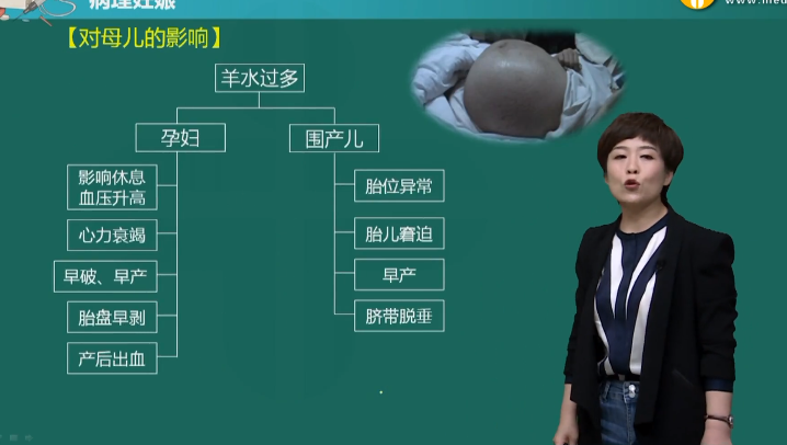 臍帶脫垂。羊水過(guò)多的程度越重,圍產(chǎn)兒的病死率越高。妊娠中期重度羊水過(guò)多