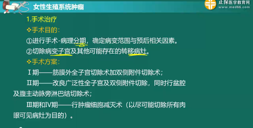 詳情子宮內(nèi)膜癌是發(fā)生于子宮內(nèi)膜的一組上皮性惡性腫瘤,以來源于子宮內(nèi)膜腺體的腺癌最常見。為女性生殖道三大惡性腫瘤之一。也是婦產(chǎn)科主治醫(yī)師考試中的高頻考點。對于該病的診斷并不難,分期主要是根據(jù)手術病理分期,需要學員會記住分期,進而選擇對應的手術方案。
