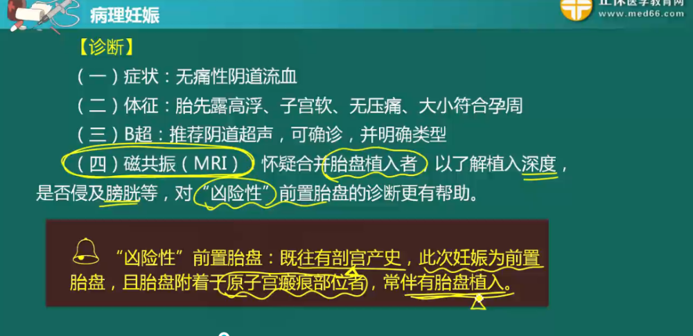 前置胎盤是妊娠晚期出血和早產(chǎn)的重要原因,與圍產(chǎn)期母兒并發(fā)癥及死亡密切相關(guān)。妊娠28周后,胎盤附著于子宮下段,胎盤下緣達(dá)到或覆蓋宮頸內(nèi)口,其位置低于胎兒先露部,稱為前置胎盤。婦產(chǎn)科主治醫(yī)師考試中需要熟練掌握前置胎盤的診斷及母兒并發(fā)癥及處理。