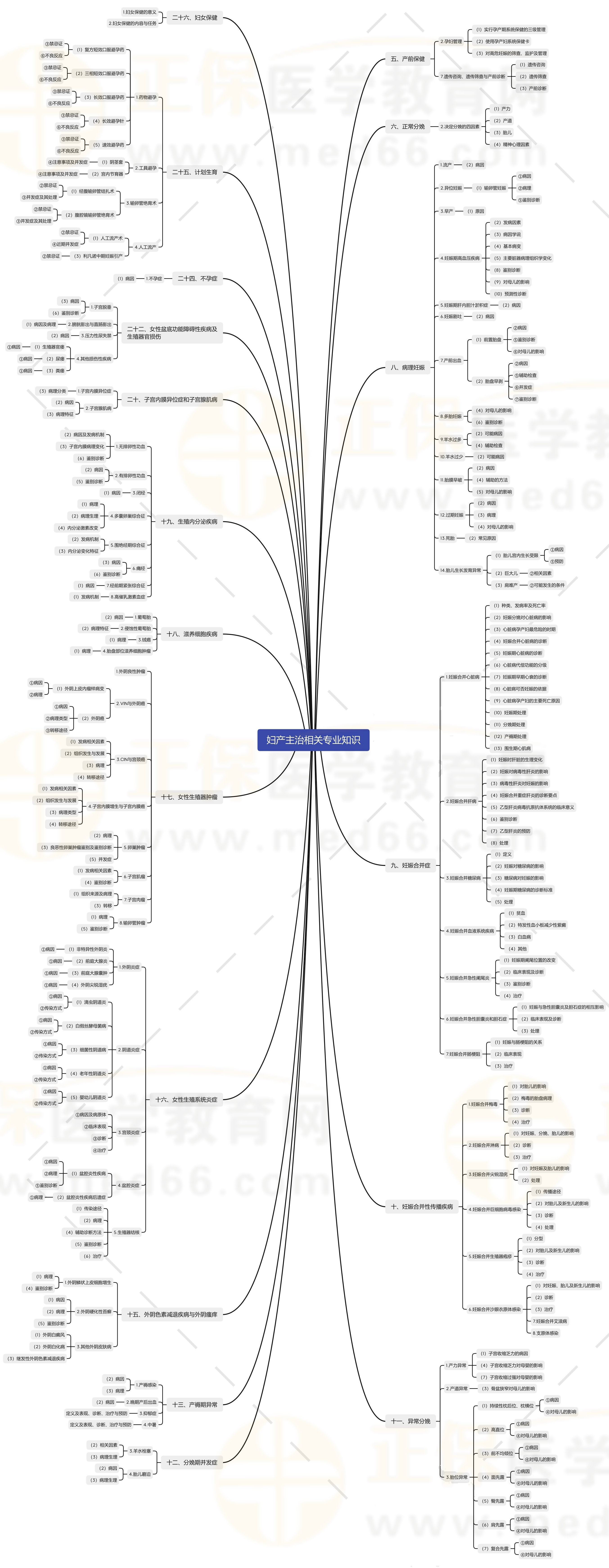 婦產(chǎn)科主治醫(yī)師考試實(shí)行全國統(tǒng)一組織、統(tǒng)一考試時(shí)間、統(tǒng)一考試大綱、統(tǒng)一考試命題、統(tǒng)一合格標(biāo)準(zhǔn)的考試制度,原則上每年進(jìn)行一次。2024年婦產(chǎn)科主治醫(yī)師考試新考期已經(jīng)開始了,為了幫助各位考生理清考試知識(shí)點(diǎn)脈絡(luò),更有針對(duì)性復(fù)習(xí),醫(yī)學(xué)教育網(wǎng)為大家整理婦產(chǎn)科主治醫(yī)師《相關(guān)專業(yè)知識(shí)》知識(shí)點(diǎn)地圖如下: