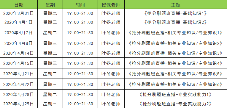 (課表為暫定安排,可能會(huì)因?yàn)槟承┮蛩赜兴{(diào)整,建議各位考生收藏本頁(yè)面,及時(shí)查看,避免錯(cuò)過(guò)課程?。?/span>