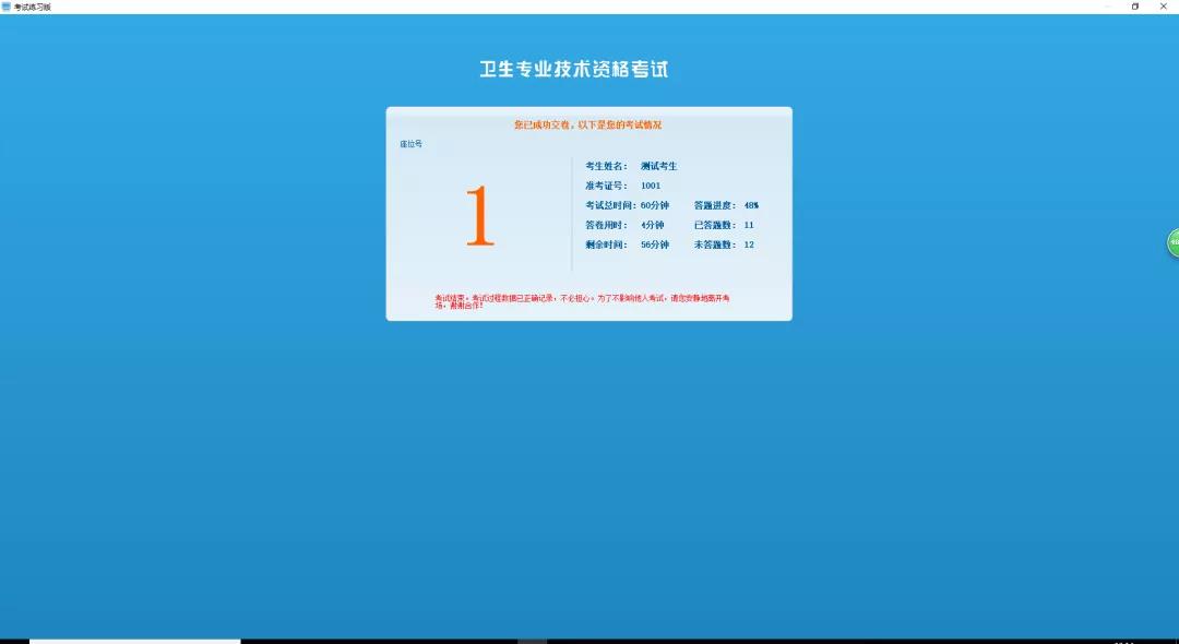 點擊確定交卷后會出現(xiàn)下圖,本次考試作答完畢,考試結(jié)束!
