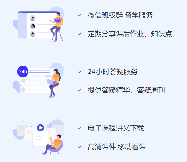 班級群督學(xué)、多樣答疑服務(wù)、高清視頻課件、電子講義、移動看課等多元化教學(xué)服務(wù),助你備考加速!