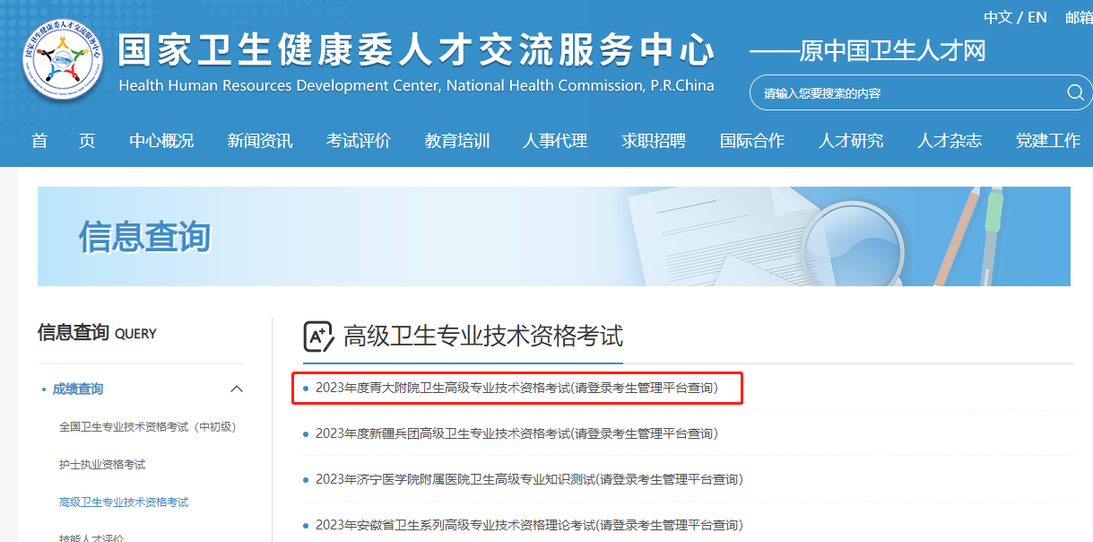 查詢?nèi)肟冢?a href="" target="_blank" textvalue="青大附院2023年衛(wèi)生高級(jí)職稱考試成績(jī)查詢?nèi)肟?gt;>>">青大附院2023年衛(wèi)生高級(jí)職稱考試成績(jī)查詢?nèi)肟?gt;>>