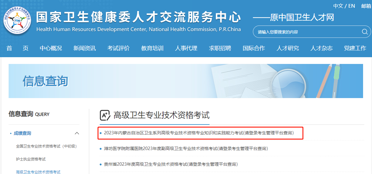 內(nèi)蒙古2023年衛(wèi)生高級(jí)職稱(chēng)考試成績(jī)查詢(xún)?nèi)肟陂_(kāi)通,為了方便各位考生查詢(xún)成績(jī),醫(yī)學(xué)教育網(wǎng)為大家搜集整理如下: