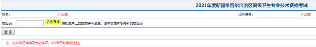 查詢?nèi)肟冢?a target="_blank">2021年新疆維吾爾自治區(qū)高級衛(wèi)生專業(yè)技術(shù)資格考試成績查詢?nèi)肟?gt; (具體開放時(shí)間以官方為準(zhǔn))