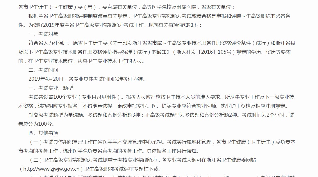 浙江省關(guān)于做好2019年全省衛(wèi)生高級專業(yè)實踐能力考試有關(guān)事項的通知已經(jīng)公布,醫(yī)學(xué)教育網(wǎng)為您搜集整理如下: