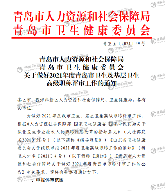 青島市人力資源和社會保障局青島市衛(wèi)生健康委員會關(guān)于做好2021年度青島市衛(wèi)生及基層衛(wèi)生高級職稱評審工作的通知公布,醫(yī)學(xué)教育網(wǎng)整理如下: