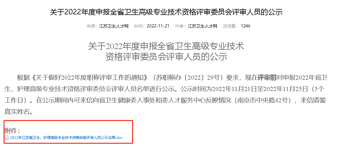 根據(jù)《關(guān)于做好2022年度職稱評審工作的通知》(蘇職稱辦〔2022〕29號)要求,現(xiàn)在評審前對申報2022年省衛(wèi)生、護(hù)理高級專業(yè)技術(shù)資格評審委員會評審人員名單進(jìn)行公示。公示時間為2022年11月21日至2022年11月25日(5個工作日)。在公示期間內(nèi)可來信向省衛(wèi)生健康委人事處和委人才服務(wù)中心反映情況(南京市中央路42號),來信請署真實姓名。
