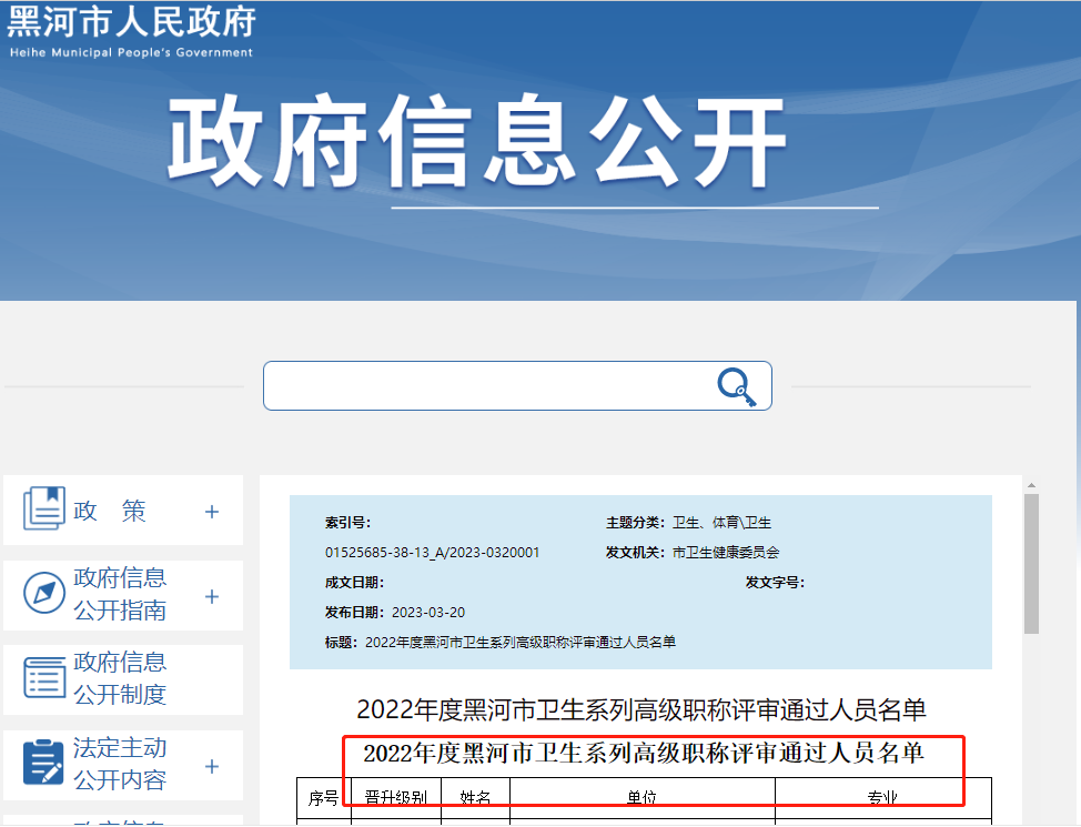 黑河市人民政府發(fā)布2022年度黑河市衛(wèi)生系列高級(jí)職稱評(píng)審?fù)ㄟ^人員名單,醫(yī)學(xué)教育網(wǎng)整理具體內(nèi)容如下: