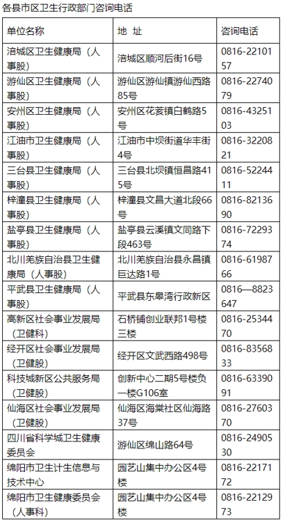 4.各縣市區(qū)衛(wèi)生行政部門咨詢電話