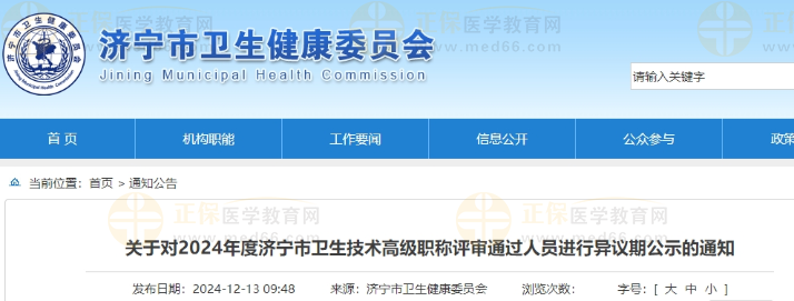 關(guān)于對2024年度濟寧市衛(wèi)生技術(shù)高級職稱評審?fù)ㄟ^人員進行異議期公示的通知公布啦!醫(yī)學(xué)教育網(wǎng)整理具體內(nèi)容如下: