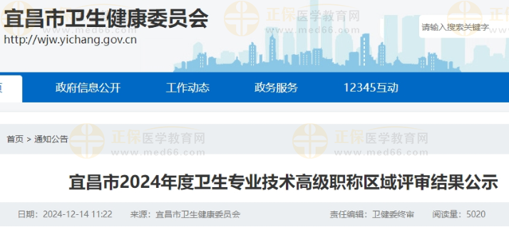 宜昌市2024年度衛(wèi)生專業(yè)技術高級職稱區(qū)域評審結果公示公布啦!醫(yī)學教育網(wǎng)整理具體內容如下: