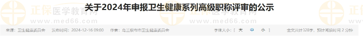 烏蘭察布關(guān)于2024年申報(bào)衛(wèi)生健康系列高級(jí)職稱評(píng)審的公示公布啦!醫(yī)學(xué)教育網(wǎng)整理具體內(nèi)容如下:
