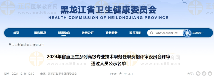 黑龍江2024年省直衛(wèi)生系列高級專業(yè)技術(shù)職務(wù)任職資格評審委員會評審通過人員公示名單公布啦!醫(yī)學教育網(wǎng)整理具體內(nèi)容如下: