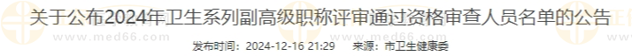 定西市2024年衛(wèi)生系列副高級(jí)職稱(chēng)評(píng)審?fù)ㄟ^(guò)資格審查人員名單的公告公布啦!醫(yī)學(xué)教育網(wǎng)整理具體內(nèi)容如下: