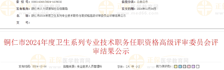 銅仁市2024年度衛(wèi)生系列專業(yè)技術(shù)職務(wù)任職資格高級(jí)評(píng)審委員會(huì)評(píng)審結(jié)果公示公布啦!醫(yī)學(xué)教育網(wǎng)整理具體內(nèi)容如下: