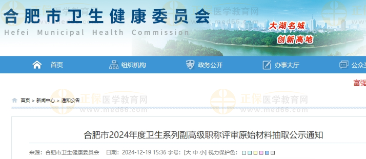 合肥市2024年度衛(wèi)生系列副高級(jí)職稱(chēng)評(píng)審原始材料抽取公示通知公布啦!醫(yī)學(xué)教育網(wǎng)整理具體內(nèi)容如下:
