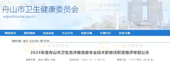 2024年度舟山市衛(wèi)生高評委高級專業(yè)技術(shù)職務(wù)任職資格評審前公示公布啦!醫(yī)學(xué)教育網(wǎng)整理具體內(nèi)容如下: