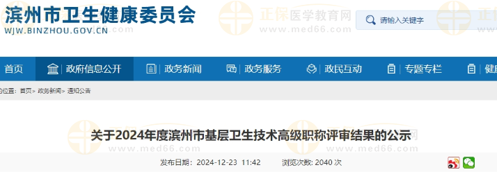 關(guān)于2024年度濱州市基層衛(wèi)生技術(shù)高級(jí)職稱評(píng)審結(jié)果的公示公布啦!醫(yī)學(xué)教育網(wǎng)整理具體內(nèi)容如下:
