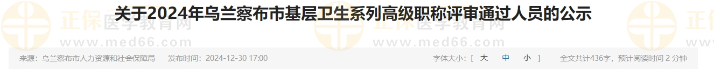 關于2024年烏蘭察布市基層衛(wèi)生系列高級職稱評審通過人員的公示公布啦!醫(yī)學教育網(wǎng)整理具體內容如下: